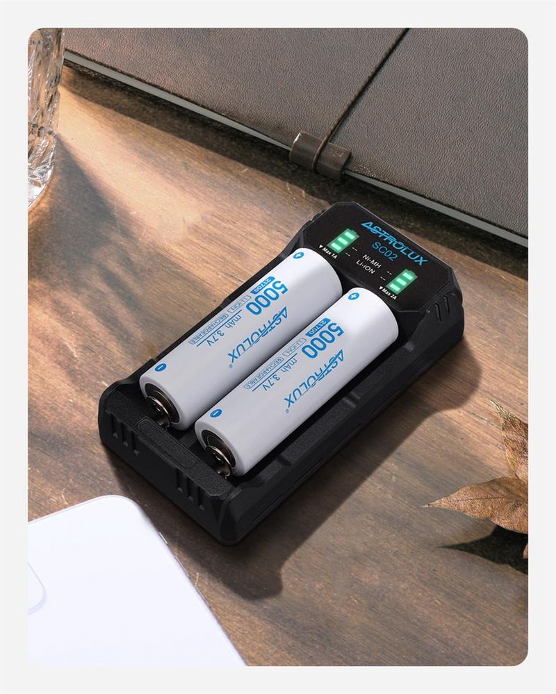 ASTROLUX SC02 Type-C QC 3.0 Quick Charge USB Battery Charger Dual-slots For Li-ion/IMR/INR/ICR Ni-MH Ni-Cd 21700 18650 26650 Flashlight Battery