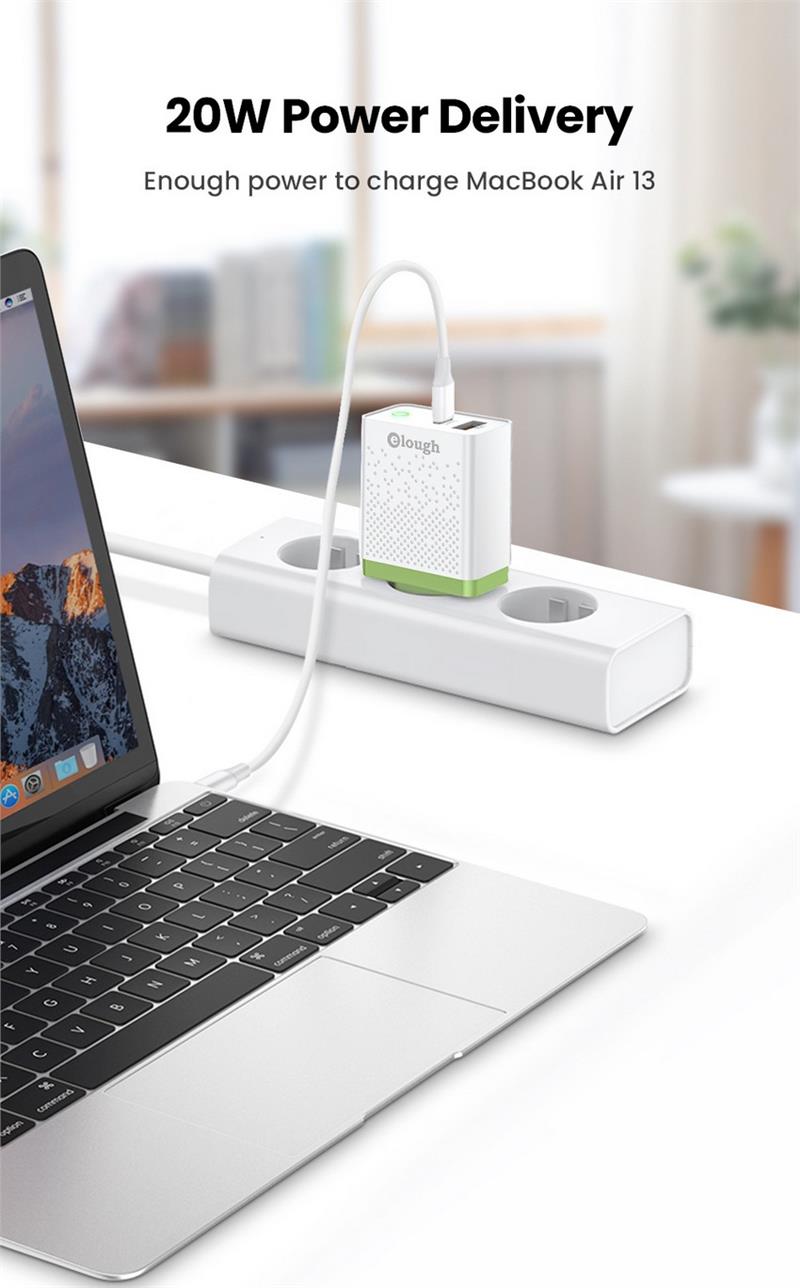Elough 20W 2-Port USB PD Charger Dual 20W USB-C PD3.0 QC3.0 FCP SCP Fast Charging Wall Charger Adapter EU/US/UK Plug for iPhone 12 Pro Max for Samsung Galaxy Note S20 ultra Huawei Mate40 OnePlus 8 Pro