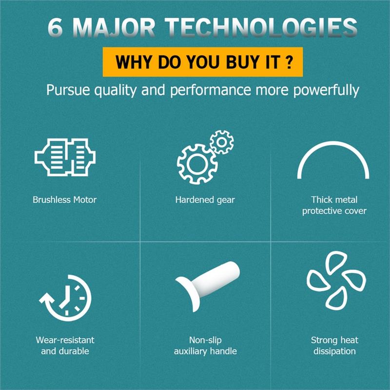 | Package included: | 1X Angle Grinder(Battery not included) 1X wrench 1X protective cover 1X handle |