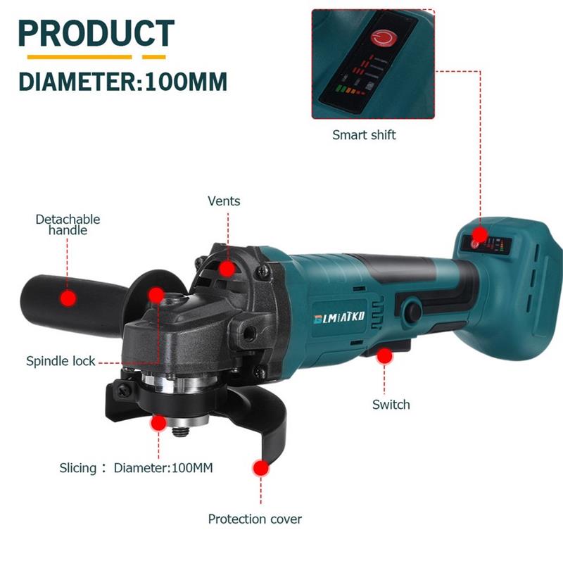 BLMIATKO 18V 800W Lithium Battery Brushless Angle Grinder 100MM 11000RPM Rechargeable Polishing Sander Cutting Machine For Makiita Battery
