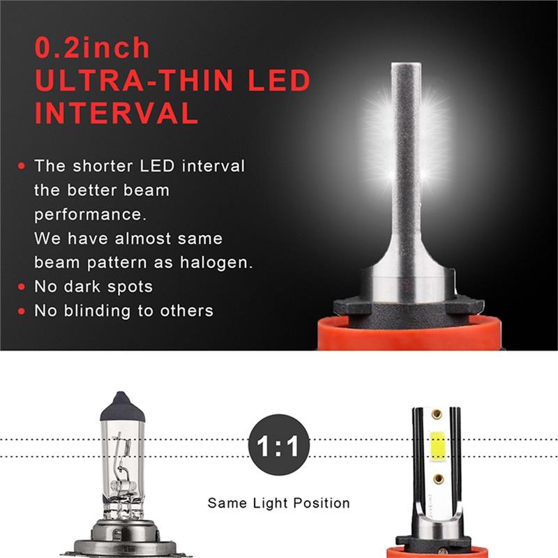 2PCS 55W 4800LM 6500K Car LED Headlight H1 H4 H7 H11 9005 9006 Fog Light Replace Bulb IP68 Waterproof