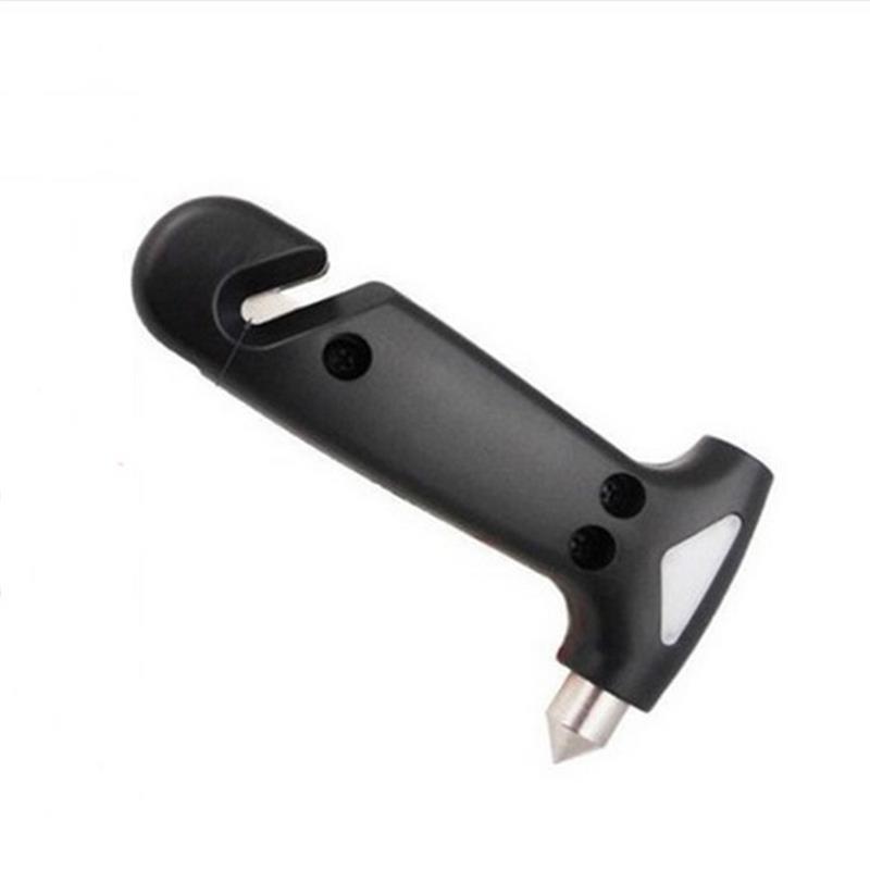 1. Necessary safety tools. At one end is a seatbelt cutter for cutting seatbelts, and at the other is a broken window tool with two hardened bicarbonized steel tips.