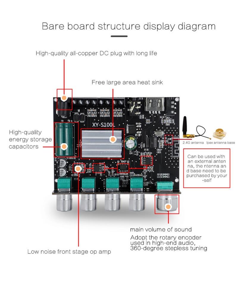 XY-S100L bluetooth 5.0 Subwoofer Amplifier Board 50WX2+100W 2.1 Channel Power Audio Stereo Amplifier Board Bass AMP