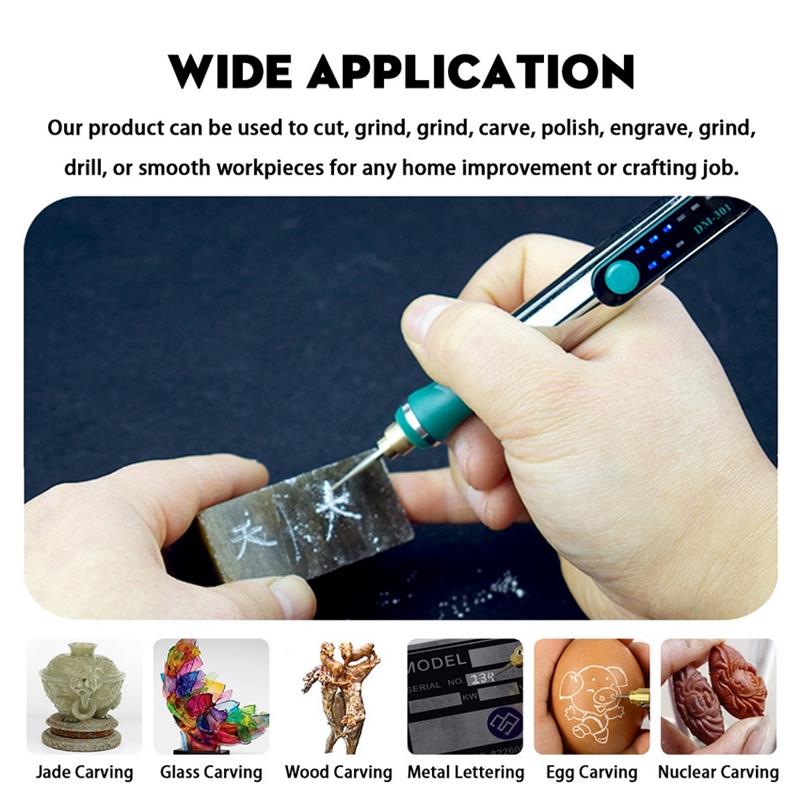 | Package Contents | Electroplated Type: 1 x Electric Grinding Pen 2 x Carving Needle 1 x Wrench 1 x USB Cable 1 x User manual 1 x Storage Box Or Green&White type 1 x Electric Grinding Pen |