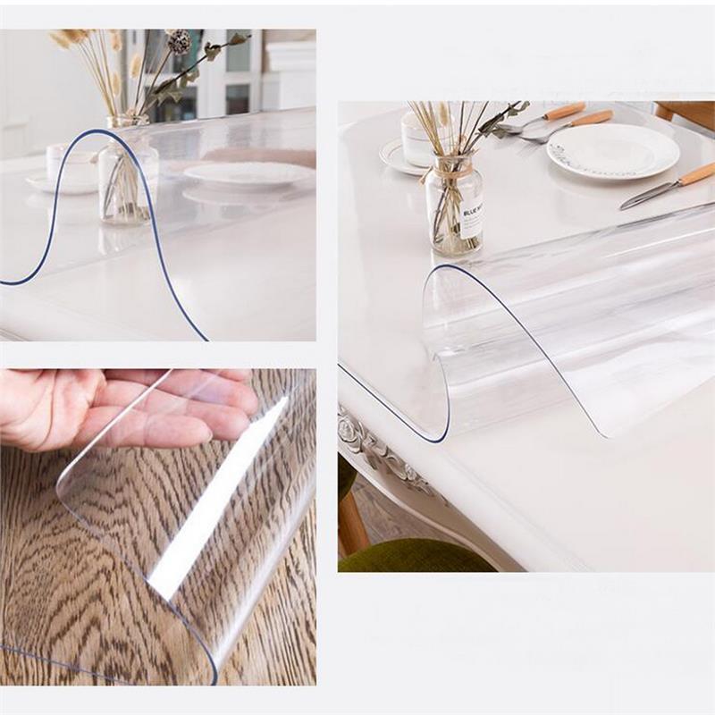 1.5mm Thickness Clear Plastic PVC Tablecloth Transparent Non-Stick Waterproof Protector Dining Table Cover for Office Home Writing Desk