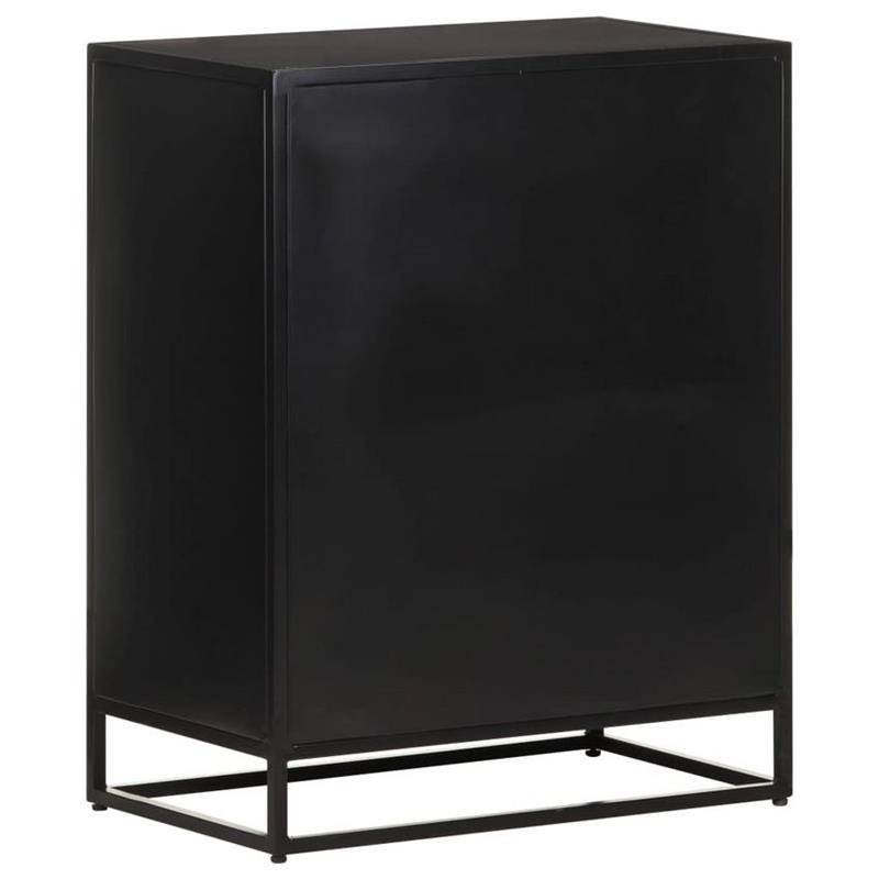 This wooden sideboard adds an industrial style to your living room. The side cabinet is made of rough mango wood, a tropical hardwood with the strength to bear the weight. It also stands the wear and tear of time, making it stable and durable. The powder-coated iron frame also adds extra stability. This cupboard features two doors with hand carved pattern and provides ample storage space. Additionally, the sturdy top is ideal for displaying decorative objects such as photo frames, potted plants, vases, etc. Important note:Colours and grains may vary from piece to piece, making each piece unique; the delivery is random.