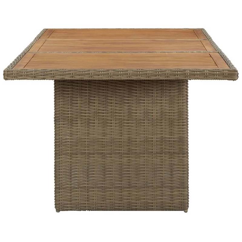 This outdoor dining table is specially designed for your garden or patio! The garden table is made of PE rattan, making it weather resistant and durable. The powder coated steel frame and solid acacia wood tabletopp make the table sturdy and stable. Thanks to the lightweight construction, the table is also easy to move. Note:We recommend covering the table during the rain, snow and frost to prolong its life.