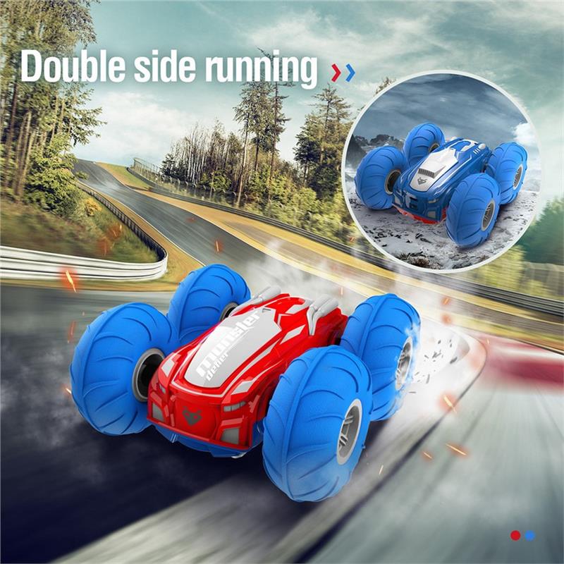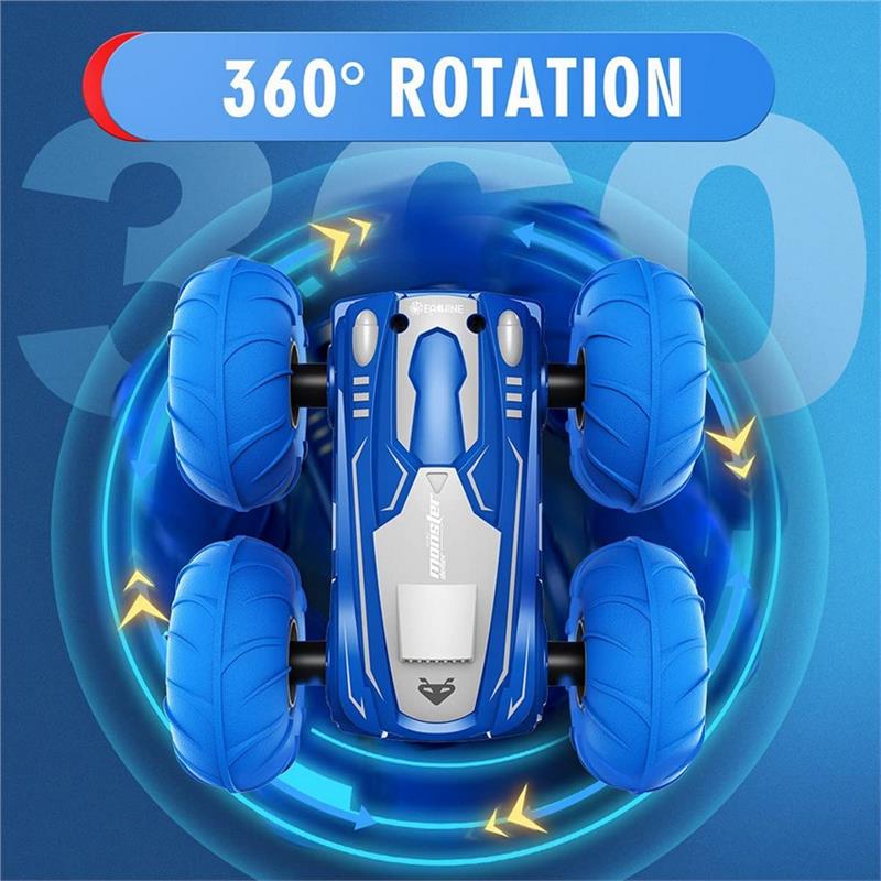 ??Cool racing stunts??:it is extremely agile, it can be driven on both sides, it drives forwards / backwards, left / right rotation, 360 ?? rotation and flip. The separate control of the wheels on the left and right makes the car extremely manoeuvrable, and the flexible suspension means that it can easily drive over obstacles. It does all kinds of flips.