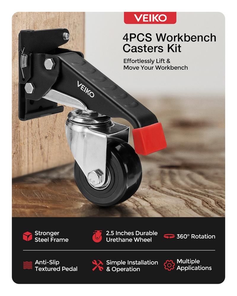 VEIKO 4PCS Quick Change Workbench Casters Kit Heavy Duty Retractable Workbench Casters Wheels 660Lbs Weight Capacity
