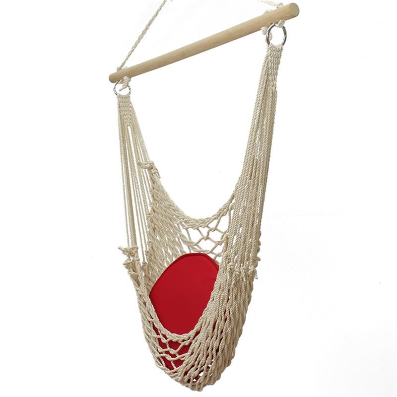 135 x 90CM Portable Outdoor Swing Cotton Hammock Chair Wooden Bar Hanging Rope Chair For Garden Patio Yard Porch