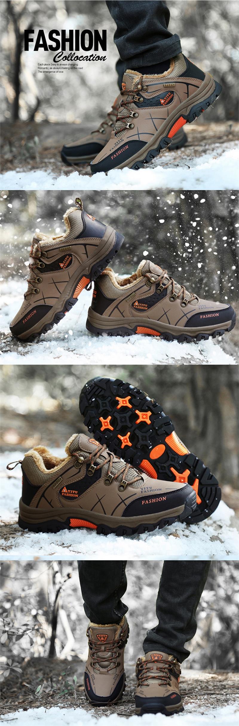 TENGOO Men Winter Casual Hiking Shoes Running Shoes Warmed Lined Non Slip Shock Absorbing Lace Up Outdoor Sports Leisure Ankle Shoes