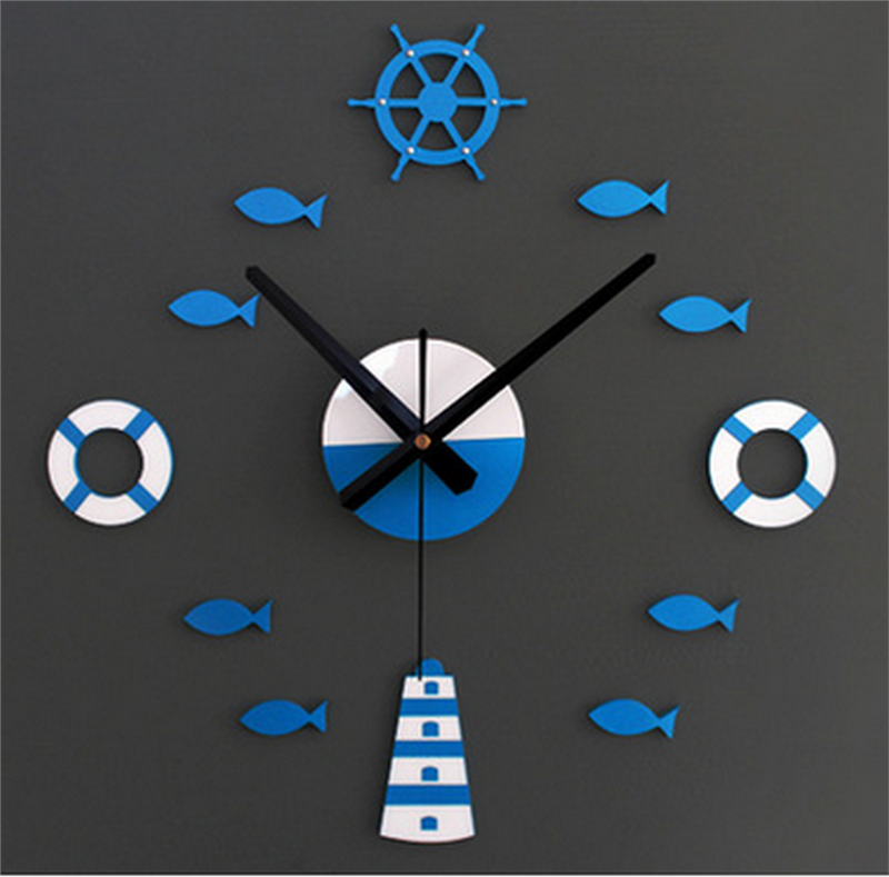 Acrylic Mediterranean Style DIY Wall Clock Buoy Small Fish Bell DIY Mute Wall Clock