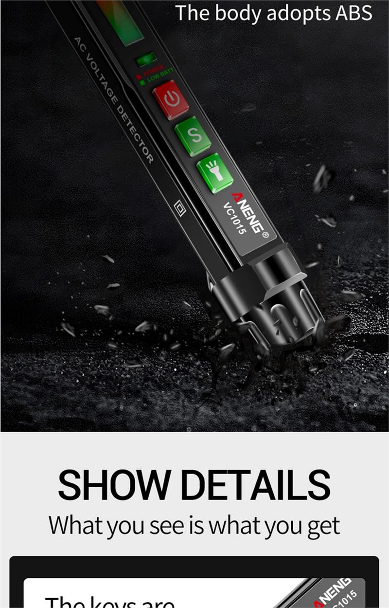 ANENG VC1015 AC12-1000V Smart Non-Contact Digital AC Voltage Tester Pen Current Electric Sensor Tester with LED Indicator