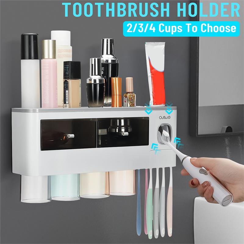 2/3/4 Cups Multi-function Toothbrush Holder Waterproof Anti-dust Mouth Cup Rack Wall-mounted Toothbrush Holder