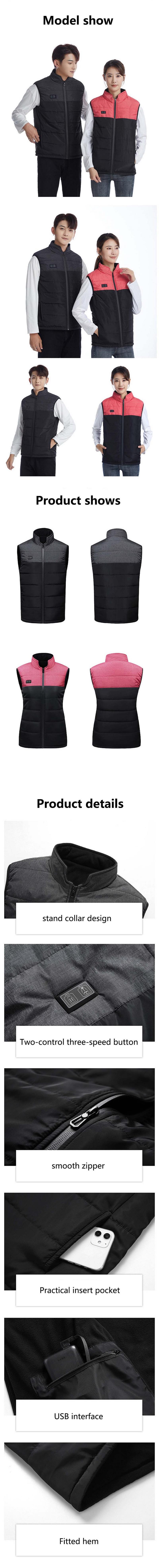 TENGOO Electric Heating Waistcoat Sleeveless Stand Collar Unisex USB Heated Thicken Warm Double Switch 4 Heating Areas Winter Waistcoat Thermal Clothing