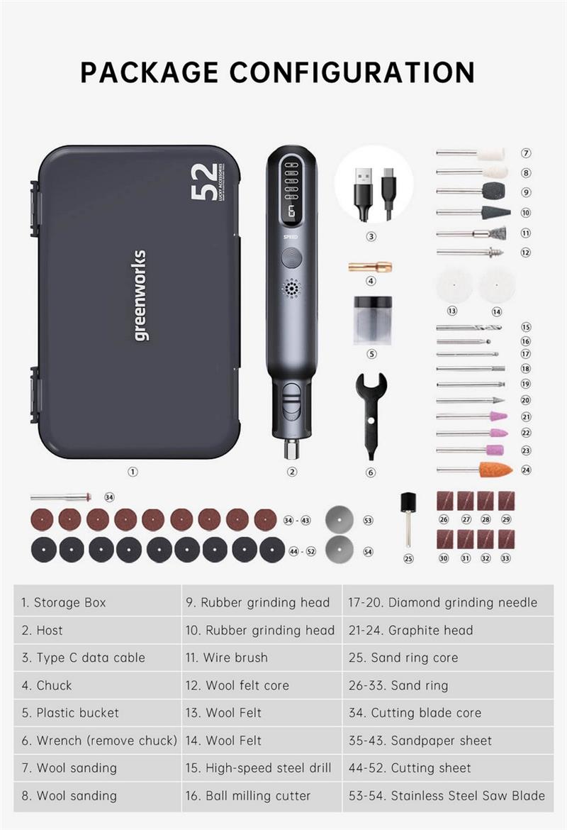 Greenworks 8v Lithium Electric Grinding Set Hand-held Grinding Wood Carving Polishing Cutting Manual Artifact For Xiaomi