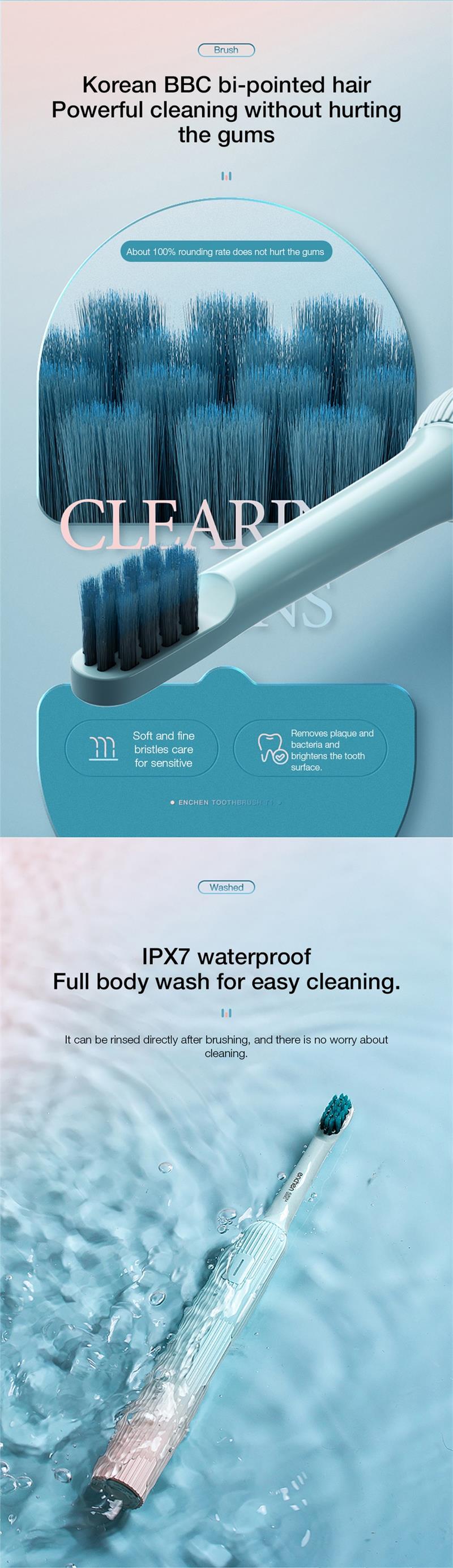 Enchen Mint 5 Sonic Electric Toothbrush Three Cleaning Modes Smart Timer Fast Charging Electric Toothbrush Long Battery Life IPX7 Waterproof Electric Toothbrush