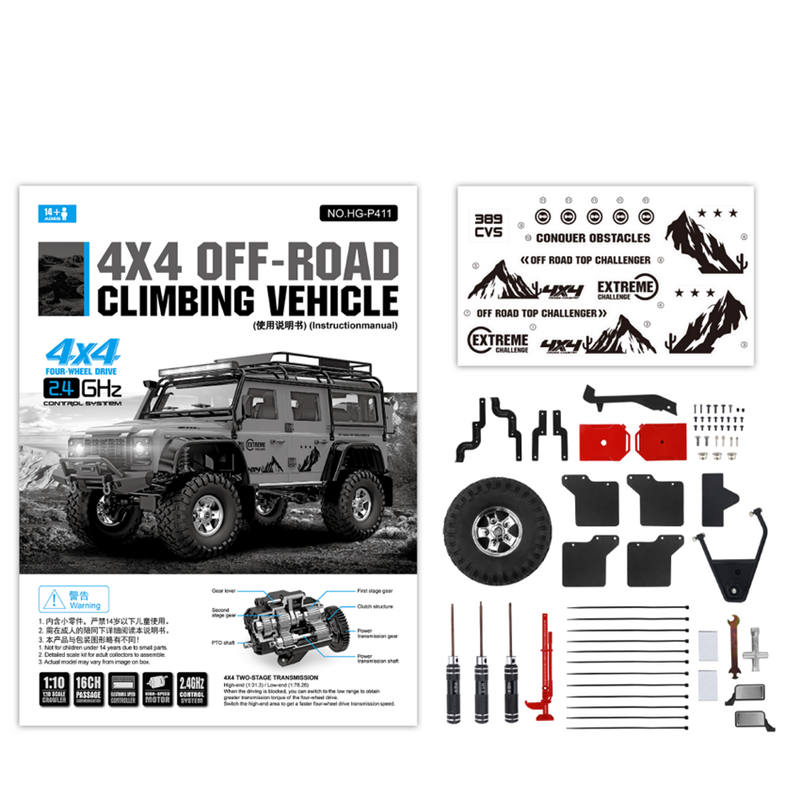 HG P411 1/10 2.4G 4WD 16CH TX4 RC Car Rock Crawler Off-Road Truck without Battery Charger Vehicles Models
