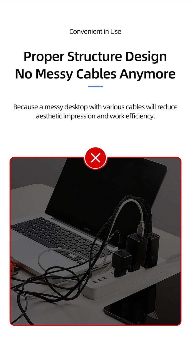 USAMS 6 In 1 USB Extension Socket Power Strip 65W Super Sic USB PD Charger With 3 2400W AC Outlets / Dual 65W USB-C / 18W USB-A QC3.0