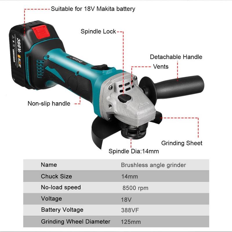 Drillpro 388VF 125mm Blue+Balck Brushless Motor 8500rpm 800W Compact Lithium Electric Polisher