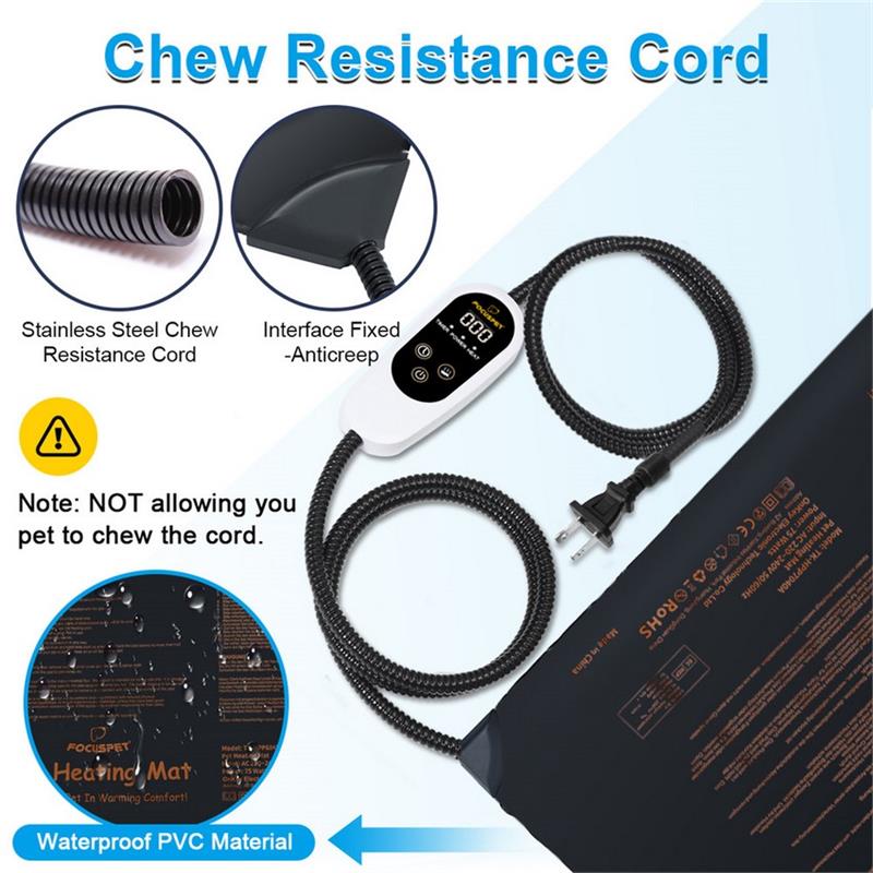 This animals heating bed includes a removable fleece cover and soft PVC envelope enclosure with waterproof.The important thing is that fuse inside of controller and 55 degree thermal protector,You no longer have to worry about heating pads that are too hot to harm your pet.