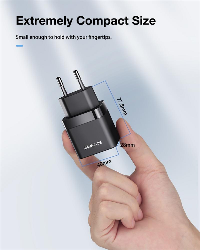 BlitzWolf BW-S21 Mini 35W GaN Wall Charger 35W PPS PD3.0 Type-C & 30W QC3.0 AFC USB-A Fast Charging EU Plug Adapter For iPhone 14 14 Plus 14 Pro Max For Samsung Galaxy S22 For iPad Pro 2021 MacBook Air