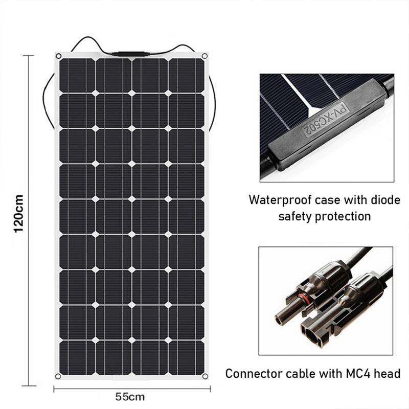 100W 18V Semi-Flexible ETFE Monocrystalline Solar Panel Connector for Camping Car RV Yacht Ship Boat Outdoor Power Accessory