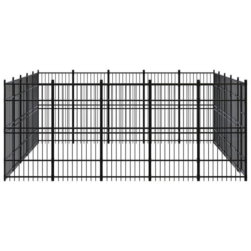This versatile dog kennel features multiple uses:playing, exercising, training, or simply keeping your dog safe. It will be the perfect play paradise for your furry friends! This dog kennel provides ample exercise space. The walls of steel bars help prevent mischief and unexpected accidents while enabling ventilation. Thanks to the sturdy powder-coated steel construction, this dog kennel is durable and built to last. The hinged door with a lockable latch system ensures extra security and safety for your dogs.