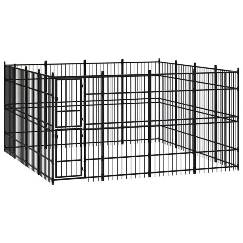 This versatile dog kennel features multiple uses:playing, exercising, training, or simply keeping your dog safe. It will be the perfect play paradise for your furry friends! This dog kennel provides ample exercise space. The walls of steel bars help prevent mischief and unexpected accidents while enabling ventilation. Thanks to the sturdy powder-coated steel construction, this dog kennel is durable and built to last. The hinged door with a lockable latch system ensures extra security and safety for your dogs.