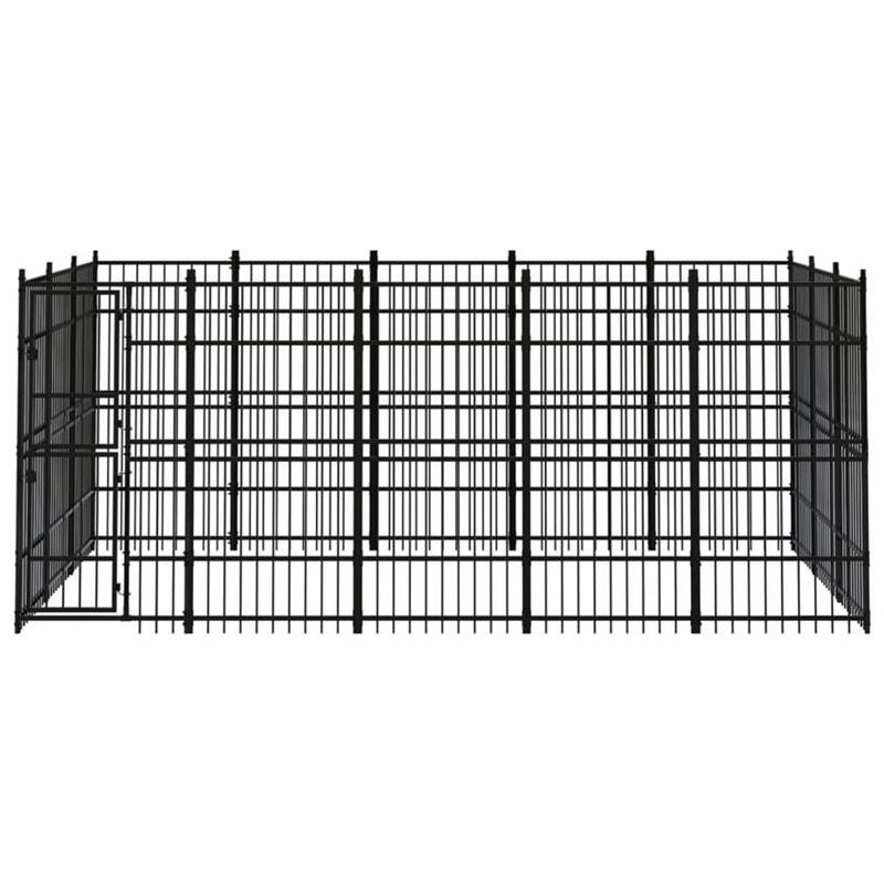 This versatile dog kennel features multiple uses:playing, exercising, training, or simply keeping your dog safe. It will be the perfect play paradise for your furry friends! This dog kennel provides ample exercise space. The walls of steel bars help prevent mischief and unexpected accidents while enabling ventilation. Thanks to the sturdy powder-coated steel construction, this dog kennel is durable and built to last. The hinged door with a lockable latch system ensures extra security and safety for your dogs.
