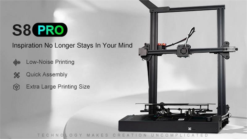 *:High-precision dual Z-axis higher pressure precision:with a Z-axis dual worm + Z-axis dual motor design, S8 PRO 3D printer works smoother and more synchronous to reduce the possibility of lines and burrs on the sides of your print, improving the print quality.