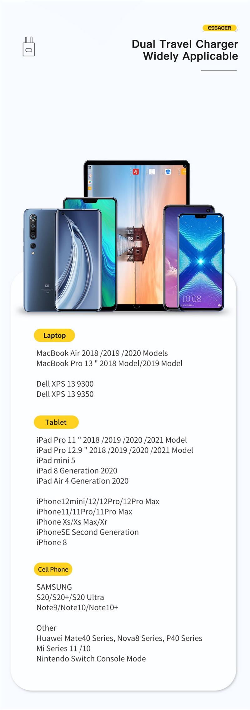 Essager Portable Mini 33W GaN Wall Travel Charger PD3.0 PPS QC3.0 Fast Charger For iPhone 13 13 Mini 13 Pro Max For Samsung Galaxy S22 MacBook Air