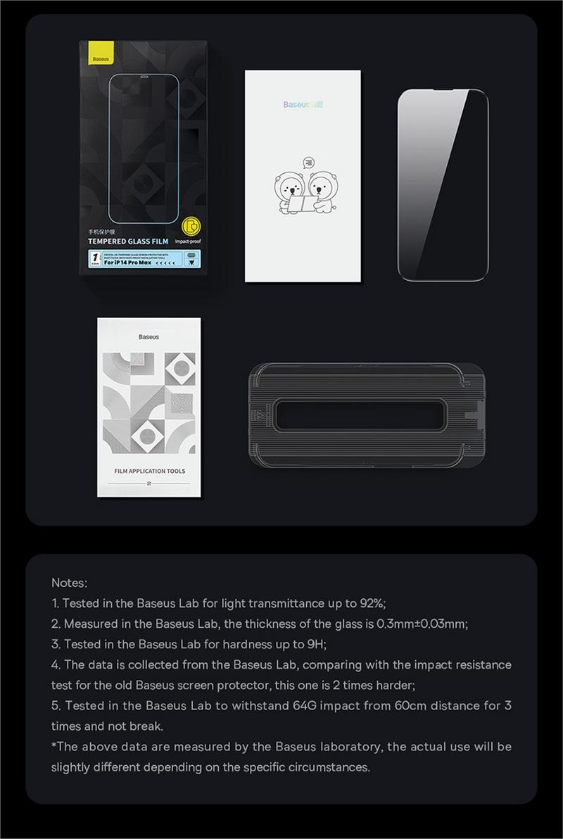 Baseus for iPhone 14 Pro /for iPhone 14 Pro Max Ultra Clarity Eye-Protection 0.3mm HD Anti-explosion Anti-scratch Tempered Glass Screen Protector