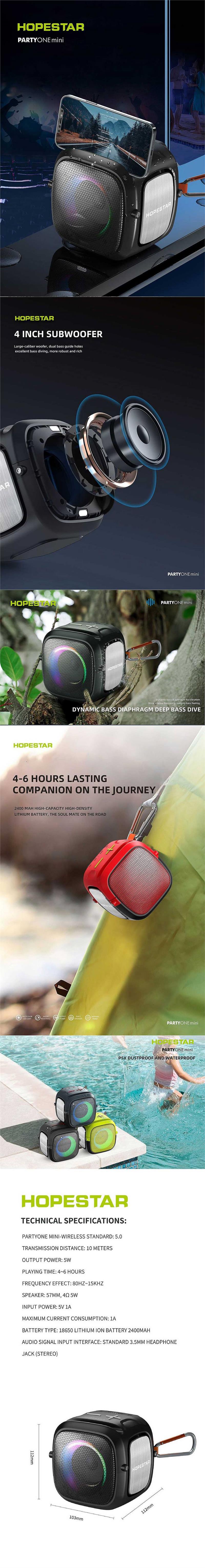 HOPESTAR PARTYONE Mini 5W bluetooth Speaker Portable Speaker Dynamic Bass Diaphram Deep Bass Dive Subwoofer 2400mAh Battery IPX5 Waterproof Outdoors Wireless Speaker