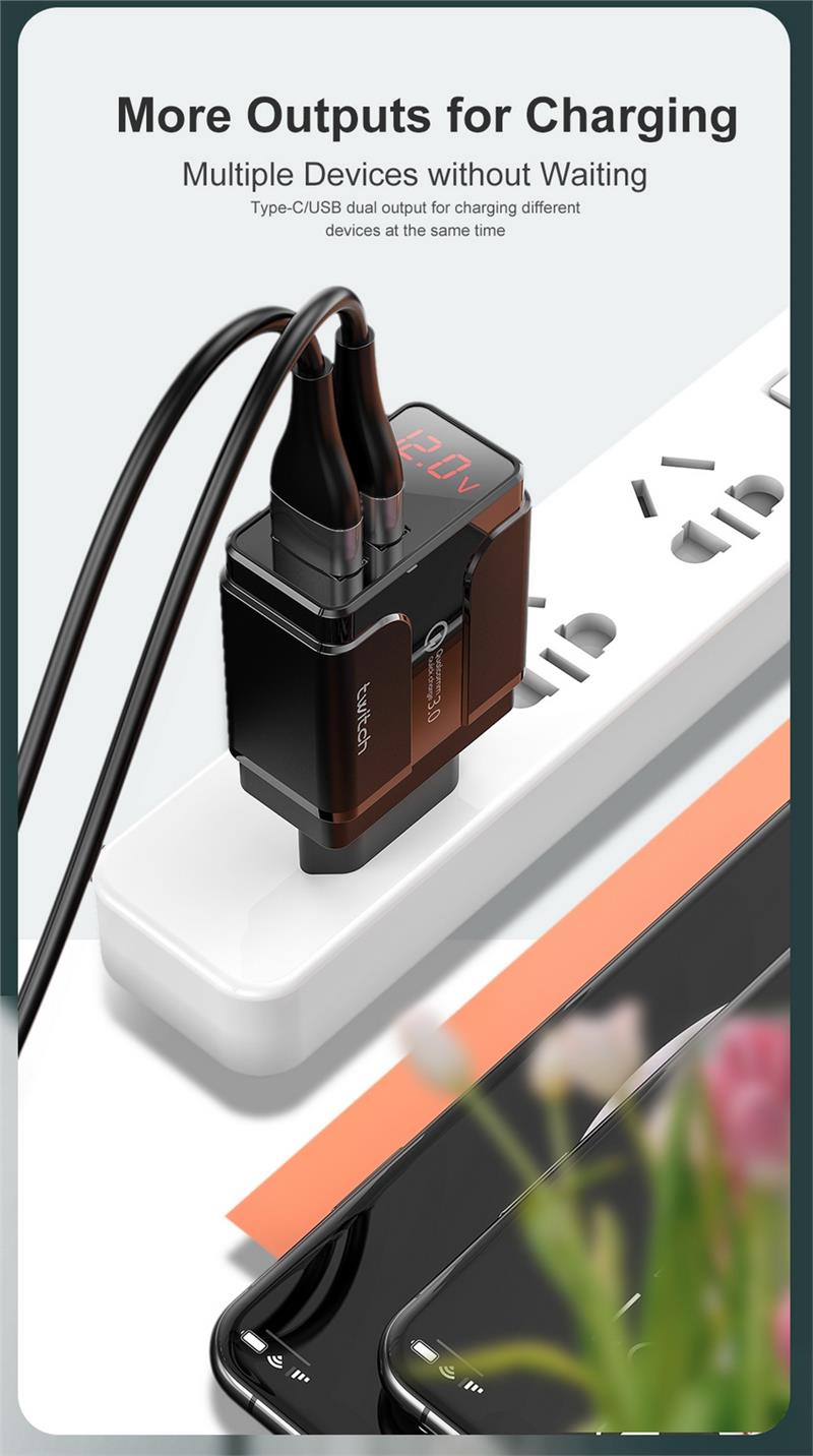 Twitch 18W 2-Port USB Charger Dual QC3.0 FCP AFC MTK Fast Charging Wall Charger Adapter EU Plug for iPhone 12 13 14 Pro 14 Pro Max for Samsung Galaxy S23 for Huawei Mate50 for Oppo Reno9 for Redmi K60 for Xiaomi 13 pro