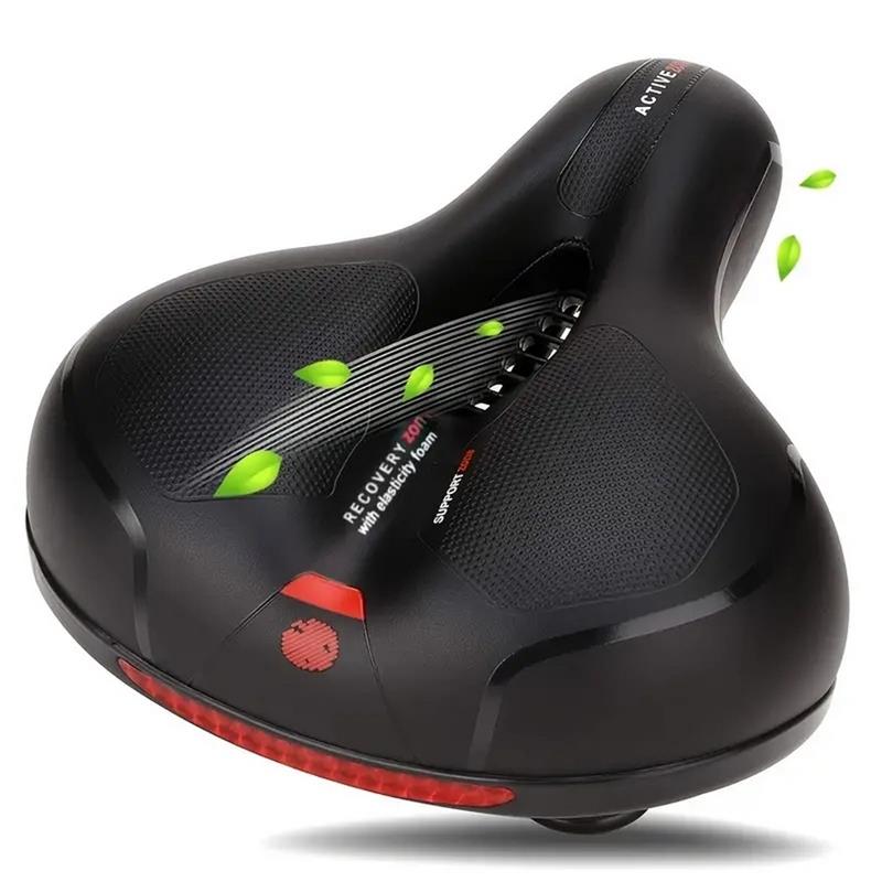 New air duct design, good air dissipationHigh-density punching thickened sponge, soft and comfortable, no pain after sitting for a long timeHighlighted reflective strip design ensures safe riding at nightWaterproof and wear-resistant leather is used to prevent the car seat from getting wet in the rainDouble shock absorbers at the bottom for better shock absorptionAnti-slip honeycomb air hole, no skidding when riding