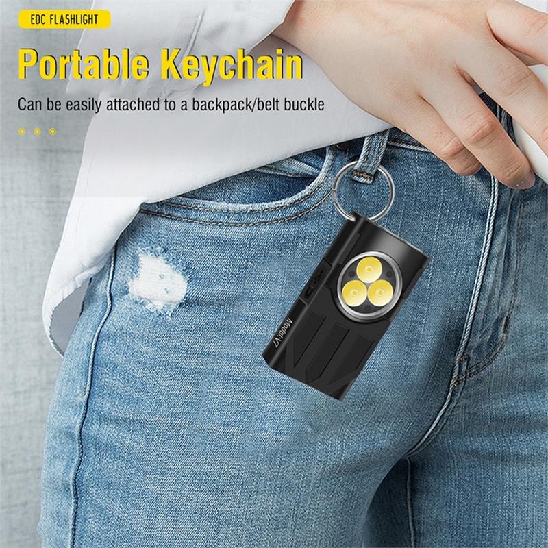 V7 1100 Lumens EDC LED Keychain Flashlight Mini Strong Light Keychain Light Outdoor Rechargeable Super Bright Multifunctional Work Light