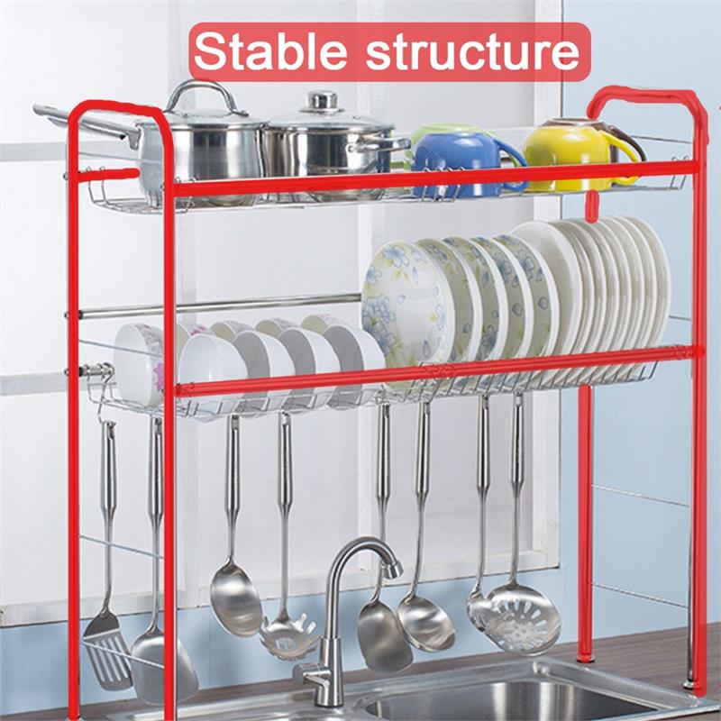 2 Tiers Stainless Steel Dishes Rack Dual Sink Drain Rack Adjustable Multi-use Kitchen Organizer Rack Dish Shelf Sink Drying Rack