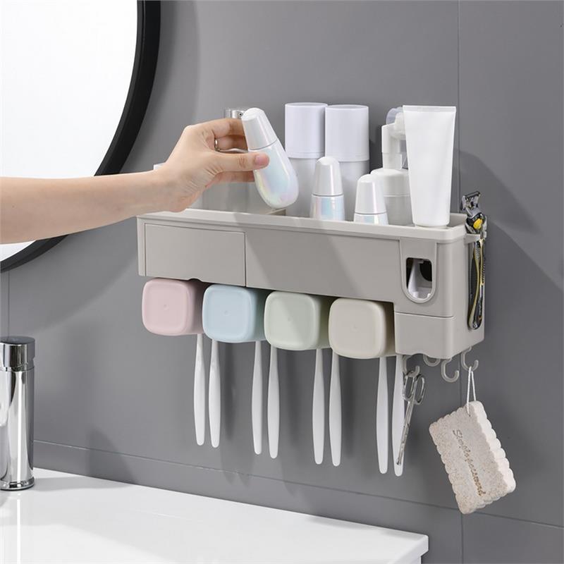 Wall-mounted Toothbrush Holder Toothpaste Dispenser Bathroom Storage Organizer