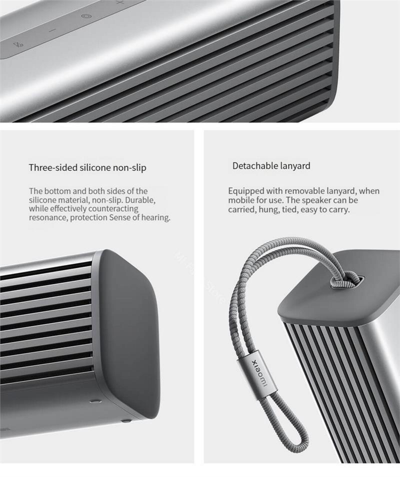 1. With a 4-unit symmetrical stereo design and two high-resolution speakers on each side and supports Hi-Res lossless audio quality2. Supports up to 21 hours of Bluetooth playback, ensuring prolonged use during outdoor activities or travels.3. Constructed with anodized aluminum material, reinforced with a double-layered structure and equipped with three-sided silicone anti-skid features, providing a stable and comfortable grip.4. Certified with IP66 dustproof and waterproof rating.5. Supports multiple devices, including computers, tablets, projectors, etc., and also functions as a USB sound card, expanding its usage scenarios.6. Comes with a detachable hanging rope, allowing for convenient carrying and versatile use, including handheld, hanging or attaching to objects.7. Supports 2 intelligent combination stereo and up to 8 whole-house playback, with the option to connect with other smart speakers for a whole-house sound system.8. Equipped with the latest Bluetooth 5.3 technology, offering fast and stable connectivity, supports LHDC protocol, and enables lossless audio quality even during outdoor Bluetooth use.