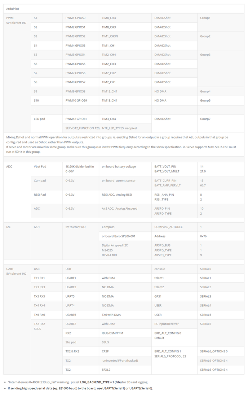 ArduPilotArduPilot fw, ??Internal errors 0x4000 l:213 spi_fail?? warining, pls set LOG_BACKEND_TYPE = 1 (File) for SD card logging.Download ArduPilot firmware from HERE.