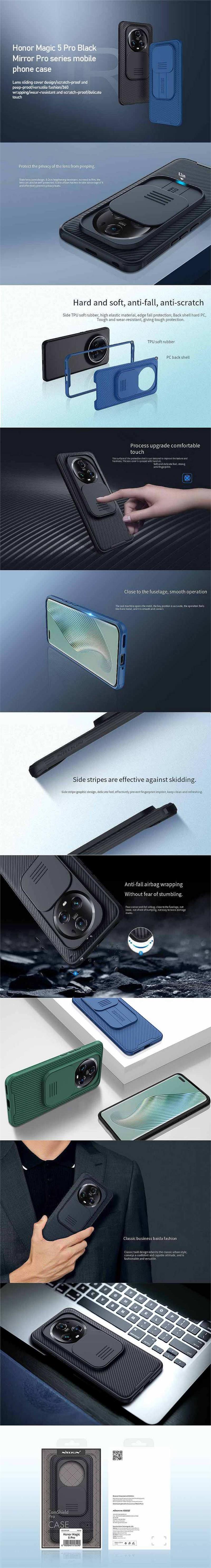 NILLKIN Anti-scratch Shockproof Mobile Phone Case with Sliding Lens Cover Protection Four-corner Airbag Wrapping Mobile Phone Cover for Honor Magic 5 Pro