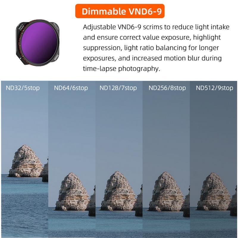 – Double-sided multi-layer nano-coating technology is adopted to endow the lens with high-quality waterproof, oil-proof, anti-fouling and scratch-resistant performance;- Aviation aluminum frame material, light weight does not affect the work and self-inspection of the gimbal, laser laser LOGO, no fading and no rust;- Multiple gear adjustments for one mirror. After installing the filter, you can rotate the filter gear to adjust the gear according to the scene requirements, eliminating the cumbersome steps of disassembling and assembling the filter;- Easy to install and disassemble, the original lens will not be damaged when installing, and the filter can be replaced at any time, so that you will not miss the wonderful moment;- The magnetic absorption storage box is tailored for the set of filters. The box is equipped with a soft sponge to fix the filter, easy to replace, and can also store the original lens frame.