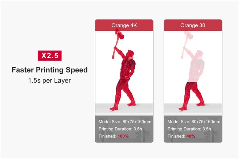Orange 4K is an ultra-high precision resin 3d printer with a built-in 4K Mono LCD screen at 6480 x 3840 resolution of X 31.5?Sm Y 10.5?Sm in subpixel. With such high precision printing technology, it will be performing more details and better surface on miniatures.