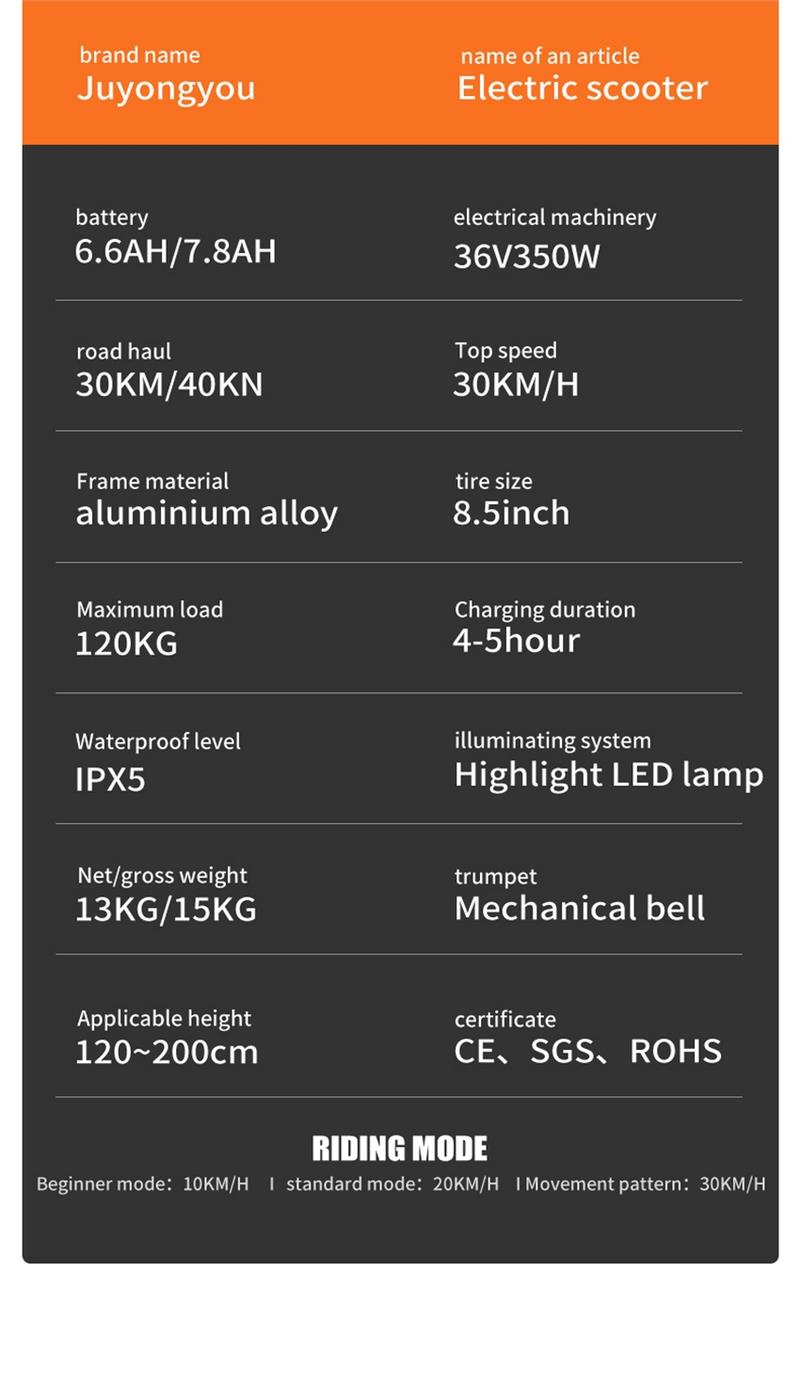 | Break Method | Front Wheel Electronic Brake & Rear Wheel Disc Brake | Max Mileage | 30-40KM |