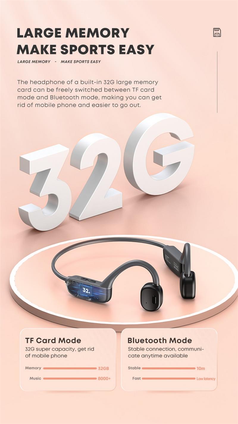 Langsdom Opetec Race1 Bone Conduction Earphone bluetooth Headset 32G TF Card 16mm Large Drivers Sport Headphones with Mic
