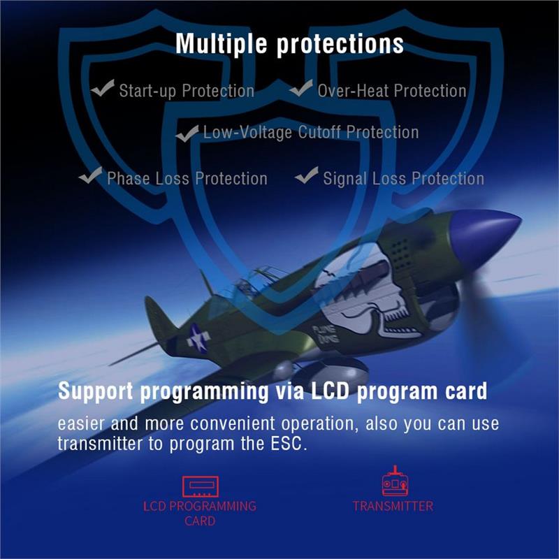 5. Adjustable SBEC 5V/6V output voltage 5V/6V provides more powerful to the servo. (40A/50A/60A/80A/100A have SBEC adjustable)