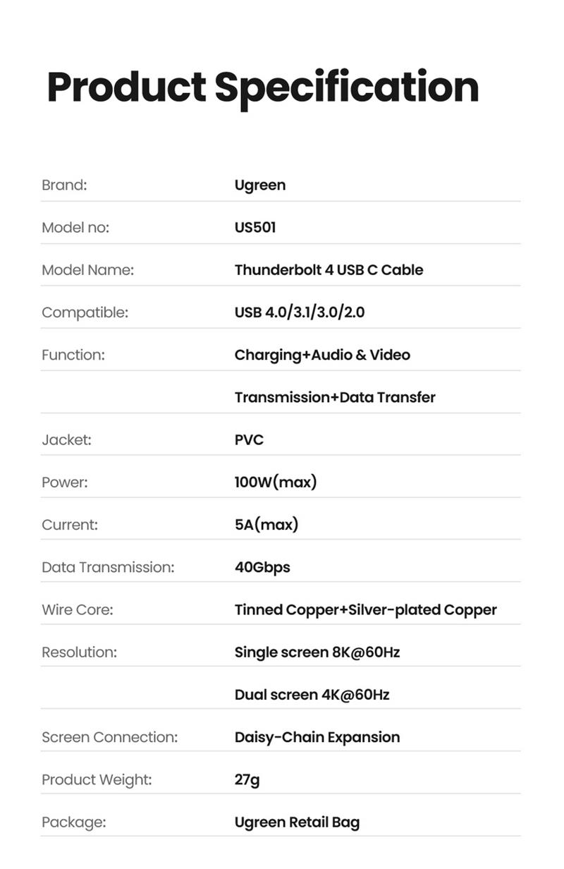 3. Power Delivery:With 100W/5A power, it ensures efficient charging and connection stability.
