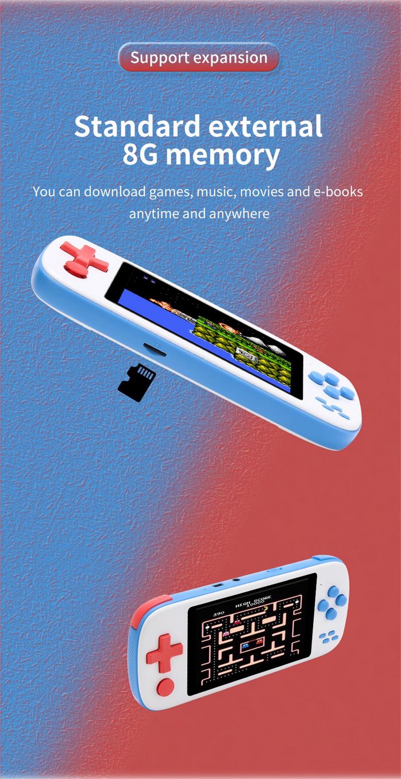 5. Expandable Memory:With an external 8GB memory included, you can store plenty of games, videos, music, and images. Additionally, the console supports TF card expansion from 128MB up to a generous 64GB, providing ample space for your multimedia files.
