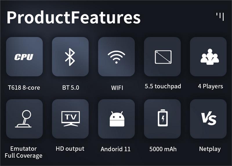 | Buttons | 18 physical buttons, including Power, Volume +/-, Reset, Start, Cross Button, Black Button, Home Button, Maunal Button, G Button, 1X (A, B, X, Y), 1X (R1, R2, L1, L2), 2x Omnidirectional rocker |